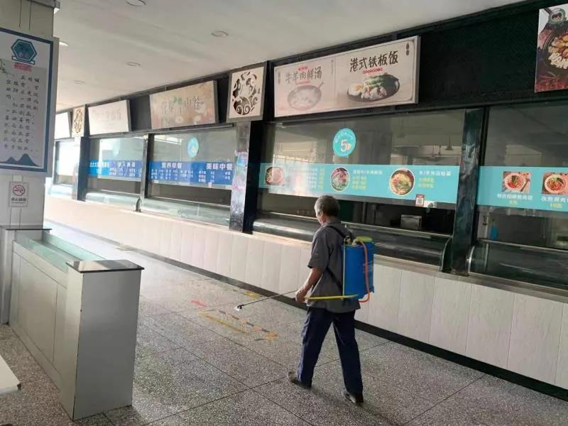 暴雨过后,学院立即启动安全隐患排查、损毁设施检修和清洁校园行动。后勤处通过挖排水沟,大功率水泵抽放等措施加紧排除校园积水,清除淤泥,清扫垃圾,并对校园内的供电、供排水设施进行全面排查,及时将受损的道路照明管线、排污泵房等进行了检修处理,确保供水供电正常运转。他们还积极开展校园消毒防疫工作,将校园垃圾桶、绿化带、道路两侧、排水沟等易滋生蚊蝇的地方作为消杀重点区域,分工配合,有序进行,仔细消杀,不放过任何一个角落,确保了校园环境卫生安全。