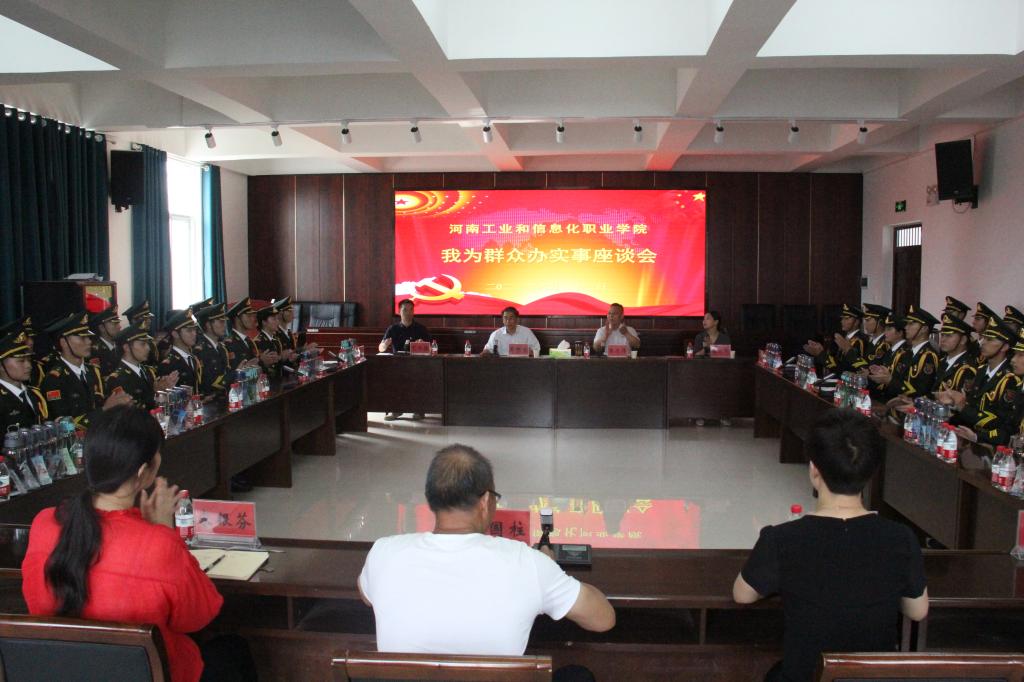 为深入推进党史学习教育,扎实开展“我为群众办实事”实践活动,6月23日下午,院党委书记张树岭深入学生社团开展“我为群众办实事”实践活动调研,听取学生代表的意见和建议。座谈会由副院长张庆伟主持,学生工作部、团委、体育部、思政部相关负责人和国旗护卫队队员代表共50人参加了座谈会。
