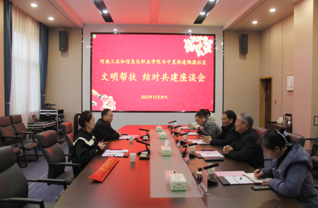 12月29日下午,我校与中星街道陶源社区“文明帮扶 结对共建”座谈会在我校第三会议室举行。中星街道陶源社区党支部书记刘丁、社区主任王宁,校党委委员魏道清出席座谈会。组织人事部、宣传部、国有资产管理处等有关部门负责人参加座谈。