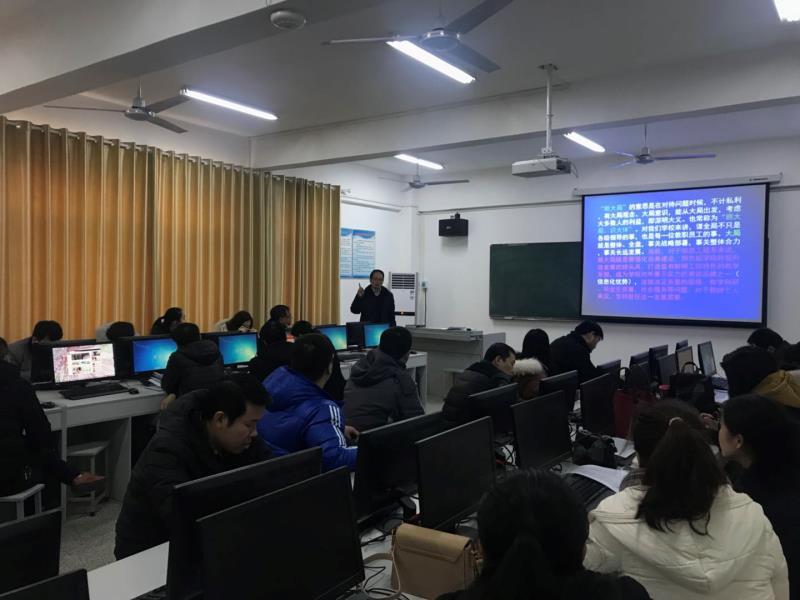 12月11日下午,在第二教学组团实训楼311教室,院长助理魏道清以“不忘初心,教好书育好人”为题为信息工程系全体专兼职教师上了一堂专题党课。