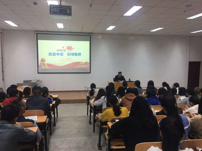 10月25日上午,副院长毋虎城以“改变中国、影响世界”庆祝改革开放40周年为主题,在第四会议室为200余名师生作了一场专题讲座,讲座由思政部主任冯海贵主持。