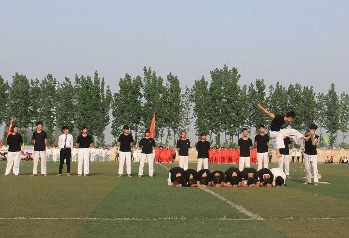 伴随着铿锵有力的运动员进行曲,英姿飒爽的仪仗队、意气风发的裁判员方队和朝气蓬勃的6支系部代表队,迈着整齐的步伐,喊着嘹亮的口号依次通过主席台。随后,开幕式文体节目火爆上演。少林功夫、跆拳道、舞蹈、太极拳、啦啦操等各种精彩绝伦的表演,迅速将现场氛围推向高潮。