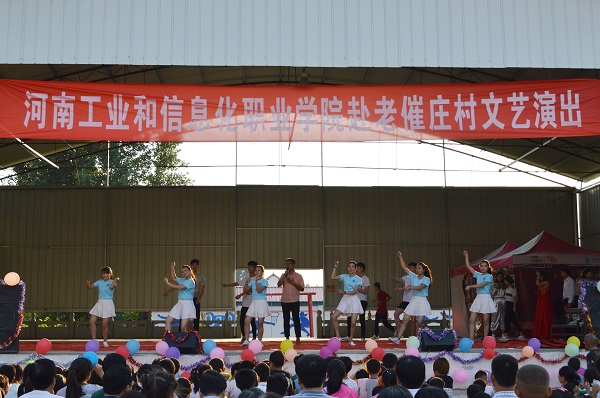 此次活动是我院与老催庄村共同举办的文化联欢,也是学院送文化下乡、加强农村精神文明建设的重要举措。为认真贯彻落实中央、省、市有关扶贫政策,努力构建精准扶贫格局,按照焦作市“四帮四扶”工作统一安排,我院与老催庄村构建了“一对一”帮扶制度,助力贫困户脱贫。近一年来,经过建立帮扶制度精准扶贫,该村贫困户收入稳步提高,生产生活条件明显改善。本次演出,不仅让广大村民感受到了党的“文化惠民”政策的温暖,而且加深了我院与村民间的沟通和联系,进一步汇聚起了扶贫攻坚的强大合力,为农村发展注入了新的活力。