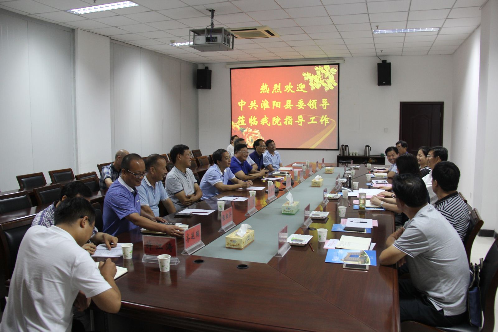 马明超详细介绍了淮阳县的发展概况、脱贫攻坚开展的情况以及精准扶贫面临问题,表达了坚决打赢脱贫攻坚战的信心和决心。同时他代表淮阳县委、县政府对我院的支持和帮助表示感谢,希望双方进一步加强沟通合作,扎实有效开展校地结对帮扶工作,为淮阳县高质量打赢脱贫战注入新的活力。