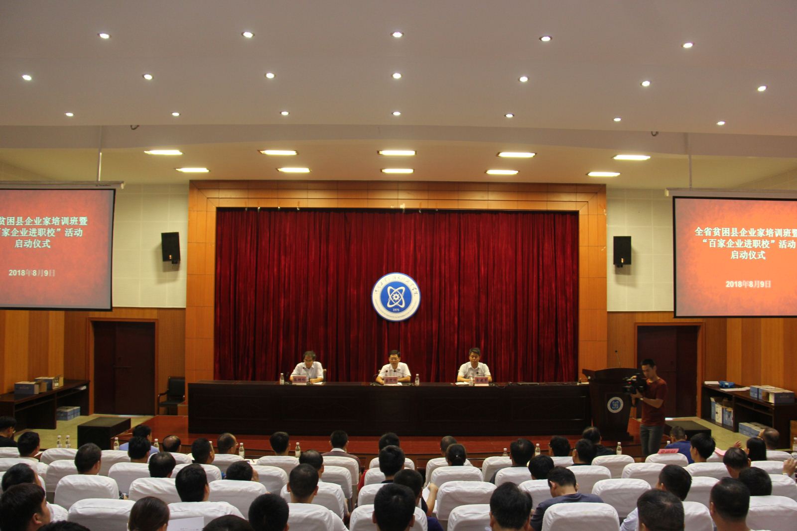8月9日至10日,由省企业服务办公室主办的全省贫困县企业家培训班暨“百家企业进职校”活动在我院成功举办,启动仪式于8月9日上午8:30在院多功能报告厅举行。省工信委政策法规处处长李俊岭、焦作市工信委副主任李建军、院党委书记张树岭出席启动仪式。省辖市、省直管县有关企业服务活动负责人和来自全省贫困县的近百名企业家参加了启动仪式。