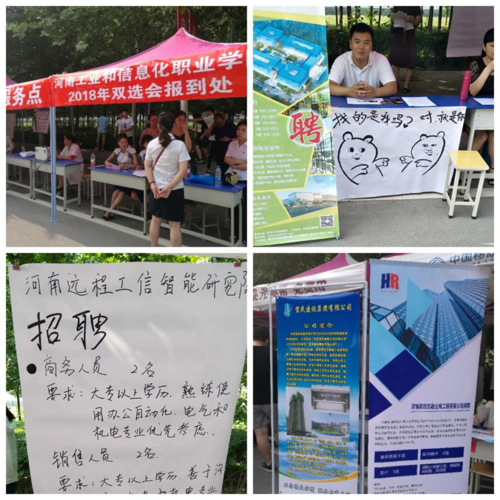 6月23日,我院与焦作市人力资源和社会保障局、焦作市人才交流中心共同举办了河南工业和信息化职业学院2018年高校毕业生留焦就业创业招聘会。本次招聘会共有86家单位参加,提供岗位2494个。涉及机械、化工、房地产、电气、建筑、酒店、旅游、市场营销、金融、餐饮、计算机、财务等多个行业。