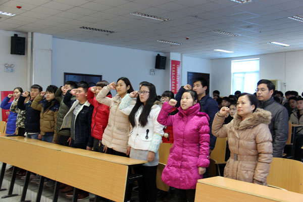 入党宣誓仪式是党章规定的发展党员的必经程序,是党组织对预备党员入党后进行的一次庄严的、生动的党的观念教育。多年来,我院坚持立德树人,重视对学生的思想政治教育,重视在优秀青年学生中发展党员。学院各级党团组织通过多种途径,教育、帮助学生坚定其理想信念和对共产主义的崇高信仰,树立正确的世界观、人生观和价值观,大量学生积极向党组织靠拢,递交了入党申请书,并在学习生活中以一个共产党员的标准严格要求自己,自觉发挥模范带头作用,努力为党的伟大事业做出应有的贡献。今后,我院将按照中央组织部《中国共产党发展党员工作细则》(2014年6月)控制总量、优化结构、提高质量、发挥作用的总要求,严格条件,严格程序,把更多符合党员标准的优秀青年学生吸纳到党组织中来。