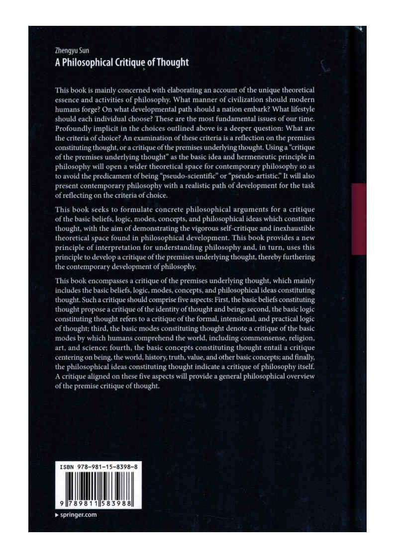 [NEW BOOK] Prof. Sun Zhengyu - A Philosophical Critique of Thought