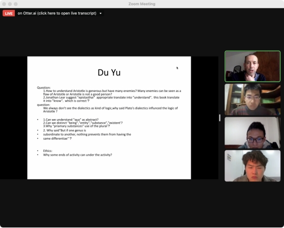 I am very glad to participate in this project.Before the class,we read the reading materials provided by the Cambridge teachers.There are two teachers giving us lessons:Christian Kemie and Mark Perkins,the former is a teacher of ancient Greek philosophy,the latter teacher teaches academic writing in English.Both teachers were very lively and interesting in their lectures and answer our questions patiently.For question outside the lesson,we go to the course management teacher——Kahlo,she is also very eager to help us solve our problems.