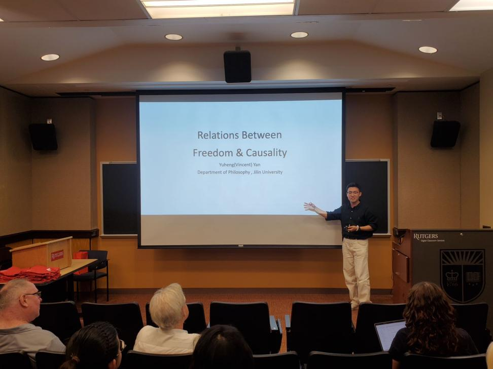 For me, the biggest gain of this exchange program is that I can look at various issues with an international perspective and a larger pattern, which is also the most valuable thing. Whether in academia or in life, global vision, international mind and overall awareness are essential, and this exchange program has given me sufficient opportunities to strive to break the "comfort zone" in study and life, to meet new challenges. Thanks again to Jilin University for providing this valuable exchange opportunity! Thanks to Rutgers Vice President Eric Garfunkel for his support of this project! Thanks to Jilin University School of Philosophy and Sociology and Rutgers University Department of Philosophy for your support!