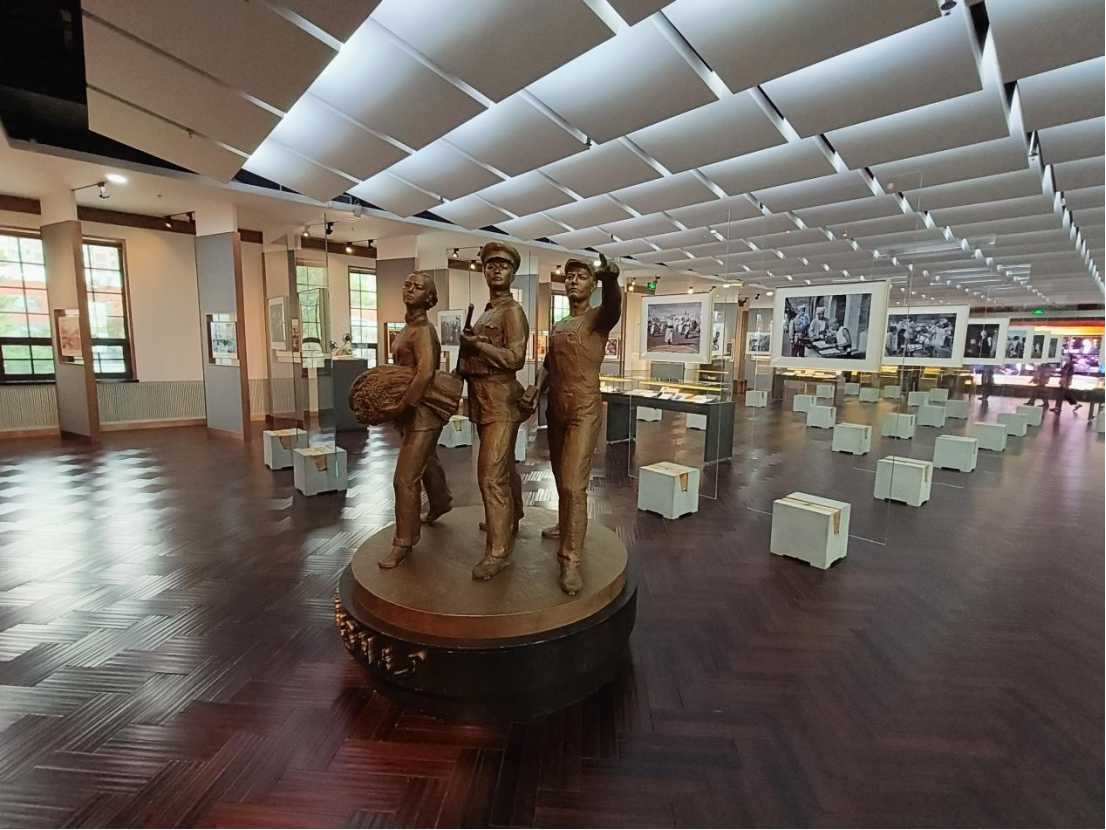 走进这座“新中国电影的摇篮”,大家首先来到原长影主办公楼。光影变幻、时光碎片,伴随着历史的厚重一同印入人心。看着一幕幕老电影,那些已经泛黄的画面,在历史的长河里留下璀璨光辉的印记;一个个老片段,那些耳熟能详的故事,在人们的内心中烙下不可磨灭的痕迹。全体师生党员久久凝立,仿若回到新中国成立之初那段风雨沧桑的岁月之中,从第一部木偶片《皇帝梦》、第一部科教片《预防鼠疫》到第一部译制片《普通一兵》,大家深深感受到长影所肩负的党的重托与新中国文化建设的伟大使命。