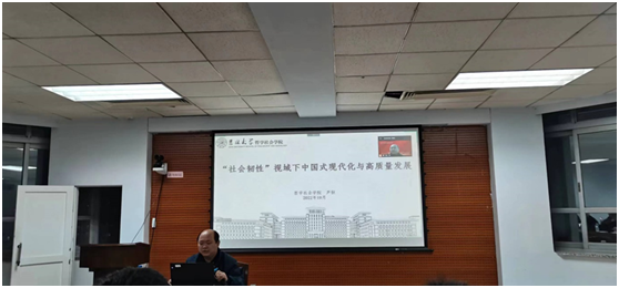 2022年11月3日晚,党课正式开始前,支部书记赵雄峰老师首先为大家介绍了芦恒教授,对芦恒教授受邀来支部讲党课表示热烈的欢迎和由衷的感谢,并向参会党员同志表明深入学习和领会二十大精神的重要性。之后,芦恒教授以“‘社会韧性’视域下中国式现代化与高质量发展”为主题进行了党课讲授。芦恒教授以二十大报告中关于“中国式现代化的五个特色”作为切入点,指出现代化与风险问题紧密相关,中国式现代化实际上是克服和抵御多元风险危机的过程。风险与机遇并存,多难才能兴邦。芦恒教授指出“多难兴邦”的本质原因在于中国社会的“韧性”和中国特色社会主义制度的“韧性”。随后,通过对“韧性”进行学理上的研究,并以“鞍钢宪法”、地方政府治理模式等为例,指出中国共产党的执政韧性体现在党的卓越学习能力、改革创新能力与自我革命能力。最后,芦恒教授以长春市某一“回迁与商品房混居型”社区为例,指出党群关系的良性互动是中国共产党执政韧性生成的社会基础。在应对重大风险危机中,广大人民群众只有在中国共产党的领导下,才能够凝聚起强大的社会支撑性力量。