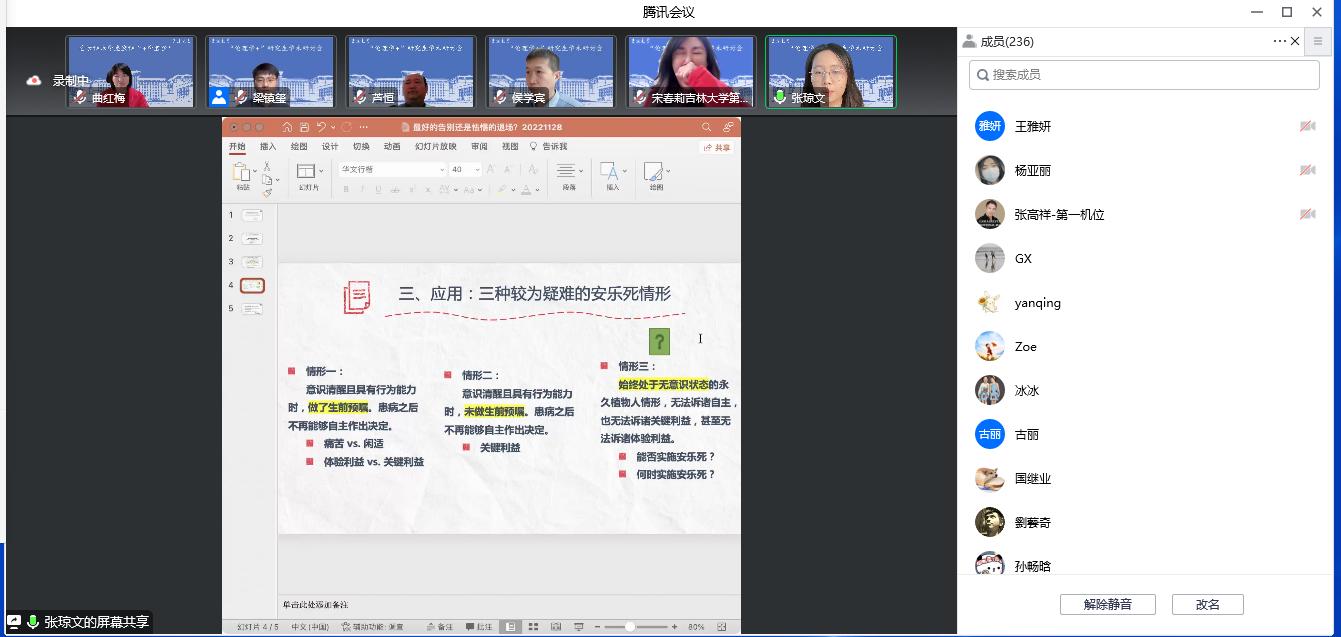 研讨会由中国·tyc1286太阳成集团(股份)有限公司博士生梁镇玺主持,来自吉林大学白求恩第二临床医学院、法学院、中国·tyc1286太阳成集团(股份)有限公司相关学科的六位学生代表开展主旨发言,吉林大学第二医院宋春莉教授,法学院侯学宾教授,中国·tyc1286太阳成集团(股份)有限公司芦恒教授、张彦彦教授受邀进行点评与分享。