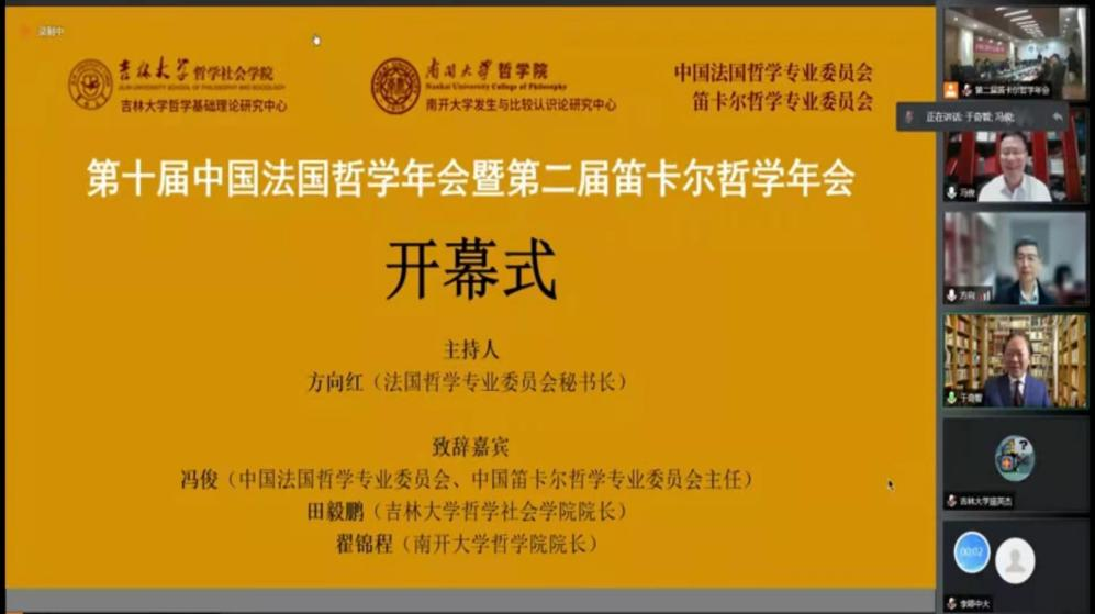 2021年11月27日-28日,第十届中国法国哲学年会暨第二届笛卡尔哲学年会以线上线下相结合的形式成功举办,“两会”分别在中国·tyc1286太阳成集团(股份)有限公司和南开大学哲学院设立线下会场。本届法国哲学年会的主题为“词语·身体·权力”,由中国现代外国哲学学会法国哲学专业委员会主办、中国·tyc1286太阳成集团(股份)有限公司、吉林大学哲学基础理论研究中心承办;本届笛卡尔哲学的主题是“笛卡尔哲学的方法及其影响”,由中华全国外国哲学史学会笛卡尔哲学专业委员会主办、南开大学哲学院、南开大学发生与比较认识论研究中心承办。《哲学研究》、《哲学动态》、《南国学术》、《社会科学研究》、《四川大学学报(哲社版)》、《道德与文明》、《哲学分析》、《吉林大学社会科学学报》、商务印书馆等单位对本次年会的举办提供了支持。来自国内外各高校的专家学者与参会者以线上的形式进行了热烈的交流与讨论。
