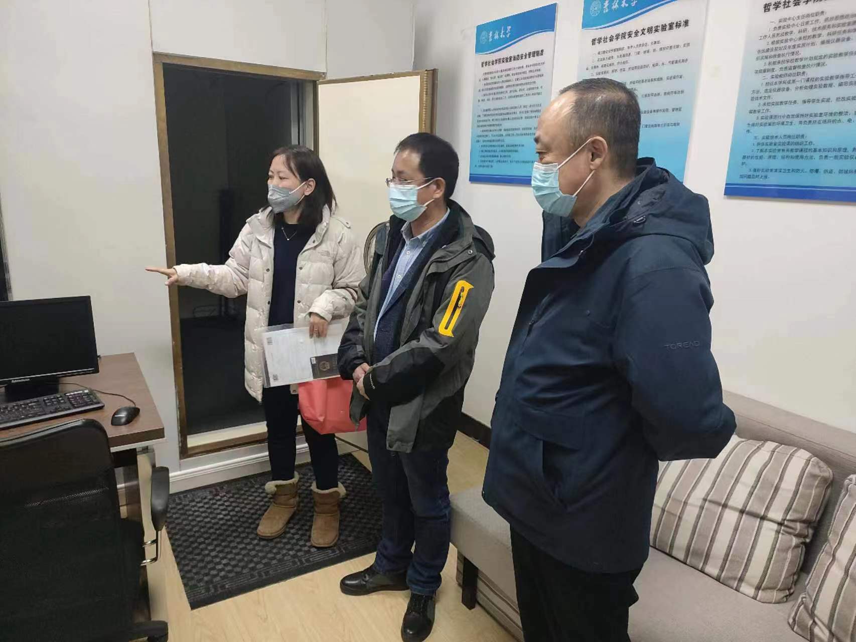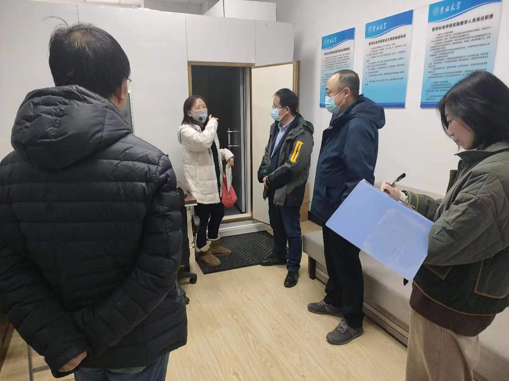 为切实做好我院2023年春季学期实验室安全管理工作,确保实验教学工作有序进行,按照学院工作部署,202338日上午,在学院党委书记李佰志同志和院长白刚教授带领下,行政副院长朱文君、心理学系主任张彦彦、行政办公室主任于海天、实验员张倩、行政秘书蔡春华等一行七人对我院社会学实验教学中心、心理学实验教学中心进行安全检查。