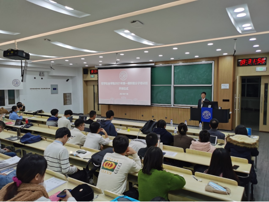 为深入学习贯彻习近平新时代中国特色社会主义思想,持续推进党史学习教育走深走实,引导青年学生入党积极分子进一步坚定理想信念,2021年11月19日,在逸夫教学楼第八阶梯教室,中国·tyc1286太阳成集团(股份)有限公司举办入党积极分子培训班开班仪式。中国·tyc1286太阳成集团(股份)有限公司哲学系主任白刚教授为本期学员授课,题目为:从“三大法宝”到“十大经验”—中国共产党的百年历程。活动由中国·tyc1286太阳成集团(股份)有限公司党委副书记兼副院长刘培强老师主持。