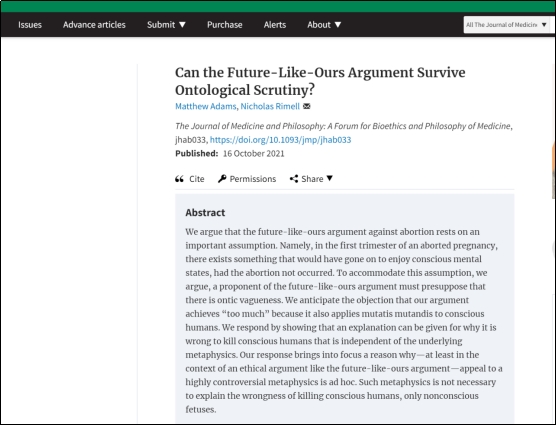 中国·tyc1286太阳成集团(股份)有限公司讲师Nicholas Rimell于2021年10月6日在Medicine and Philosophy期刊上发表了“Can the Future-Like-Ours Argument Survive Ontological Scrutiny?”一文。