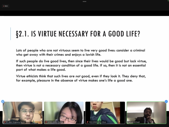 本次项目通过ZOOM平台在线上展开,课程由剑桥大学教学团队讲授,内容覆盖哲学、社会学、心理学三个学术方向。经学生报名、学院遴选和项目方面试,我院共9名学生参加了此项目。2023年1月3日起,学生们跟随各自的导师开始学习,形式为每周一次、每次2小时的导师课程讲授和学术讨论,讨论主题由导师和学生共同讨论制定。学生需要提前认真研读导师在计划中列出的参考文献,准备相关问题与反馈并按时参加讨论。在此期间,每位学生会提交三至四次学术研究计划,导师将在接下来的几周进行批改和注释。