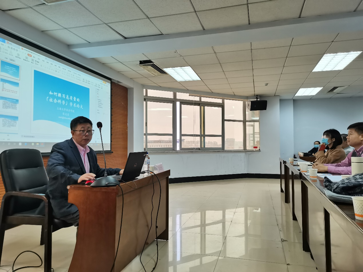 张文宏教授以《如何撰写高质量的学术论文》为主体进行了关于量化研究方面的讲座。张文宏教授以“总体的论文写作流程”、“研究问题的选择和可解决性以及争议性”、“问题的选题类型”和“文献综述“四个部分作为其研讨内容的主体向大家进行了阐释。在讲座中,张教授向大家介绍了定量研究的整体研究以及写作流程。在问题的选题阶段,张教授向大家强调了问题选择的范围和特点应该是集中的、具体的、原创的并且有意义的。在问题的可解决性方面,张教授强调了四种不要采用的选题以及应该采用什么样的选题能取得更好的研究成果。最后,张教授向大家介绍了国内外可以查阅到优质文献的方法与路径,并在讲演结束后耐心地回答了大家所提出的问题。