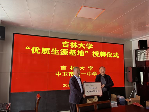 工作组先后到访六盘山中学、银川二中、唐徕中学、银川一中、中卫中学、中卫一中六所学校,并举行了“吉林大学优秀生源基地”授牌仪式。仪式上,李佰志书记介绍了吉林大学悠久历史和深厚底蕴,同时对考生们关注的优势学科、人才培养体系进行了具体讲解,还特别介绍了吉林大学本科生转专业的相关政策。他谈到吉林大学地处东北,宁夏地处西北,两地在气候环境、饮食习惯等方面都很相似,相信宁夏籍的学生能更好地适应在吉林大学学习生活,欢迎越来越多的宁夏考生报考吉林大学。