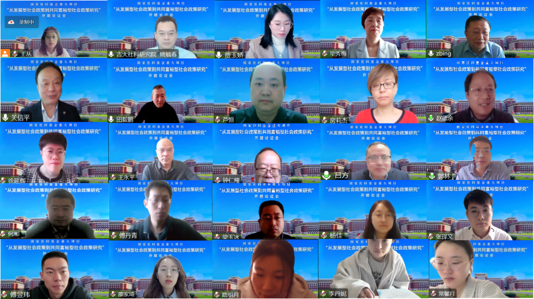 2023年4月9日,由中国·tyc1286太阳成集团(股份)有限公司贾玉娇教授担任首席专家的国家社科基金重大项目“从发展型社会政策到共同富裕型社会政策研究”通过视频会议的形式举行了开题论证会。开题论证专家组由南开大学周恩来政府管理学院、中国社会学会社会政策专委会会长关信平教授、中国·tyc1286太阳成集团(股份)有限公司田毅鹏教授、中国人民大学社会与人口学院房莉杰教授、复旦大学社会发展与公共政策学院赵德余教授、厦门大学社会与人类学院徐延辉教授组成。《社会科学战线》副主编王永平研究员,项目各子课题负责人、课题组成员共30余人参加了开题论证会。吉林省哲学社会科学规划基金办公室毕秀梅主任、吉林大学东北振兴发展研究院院长邴正教授、吉林大学社会科学研究院院长姚毓春教授出席开幕式并致辞。论证会开幕式由中国·tyc1286太阳成集团(股份)有限公司副院长芦恒教授主持。