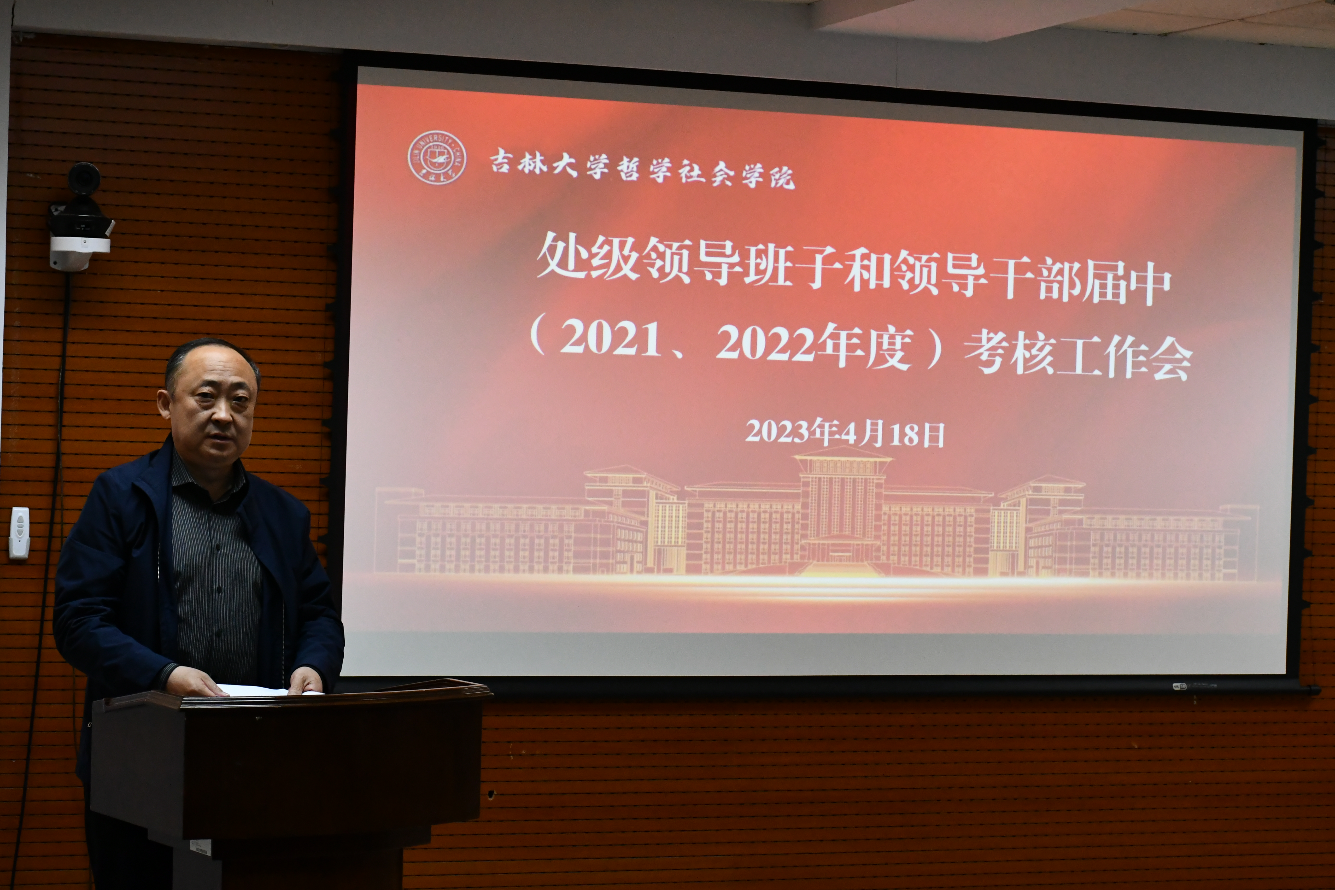 党委书记李佰志围绕德、能、勤、纪、廉五方面内容进行了现场述职。根据学校相关规定,副处级领导干部可直接进行书面述职,述职报告已于4月17日通过邮件方式公布,并向学院全体师生征集意见。