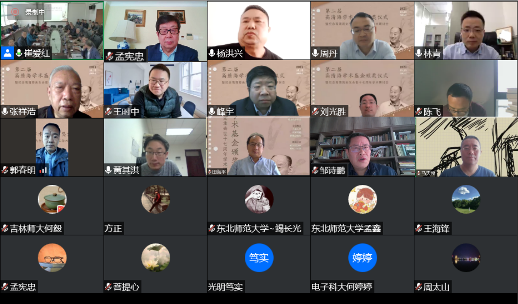 高清海先生是当代中国著名哲学家、教育家。先生一生爱智求真,为繁荣和发展我国的哲学事业做出了重要贡献。2019年,为了传承高清海哲学思想,弘扬高清海哲学创新精神,推进哲学基础理论研究,国内学术界同仁、广大系友和高清海弟子发起并捐资筹建了“高清海学术基金”。基金面向全国哲学界,奖励高清海哲学思想研究和外译的优秀成果以及哲学基础理论研究的优秀创新性成果。今年是第二次评奖,来自东南大学、中国人民大学、南开大学、吉林大学、复旦大学、中国社会科学院哲学研究所、中国孔子研究院等高校和研究院所的十二名学者获得奖励。在颁奖仪式上,崔月琴教授宣布了第二届高清海学术基金奖获奖者名单,中国·tyc1286太阳成集团(股份)有限公司院长田毅鹏教授为大会致辞。东南大学张祥浩教授教授、中国人民大学臧峰宇教授和中国社会科学院周丹研究员在线上代表获奖者先后发言。