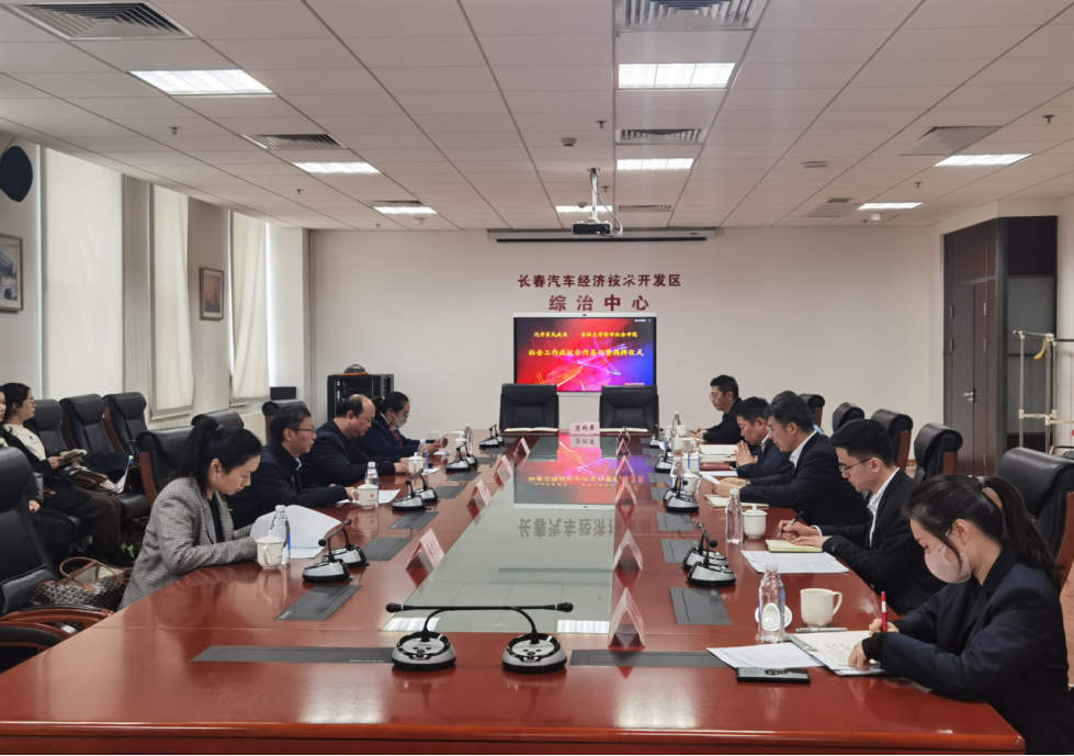 为深入贯彻落实习近平总书记关于民政工作的重要指示批示精神和党的二十大精神,进一步发挥社会工作专业作用,实现社会工作领域理论、人才、资源的共享与互动。经我院与长春汽车经济技术开发区民政局友好协商,联合建立“社会工作研究与实践基地”。2023年4月25日下午13:30,副院长芦恒教授带队与汽开区民政局在汽开区管委会大楼进行政校合作签约揭牌仪式活动。我院参会人员为社会学系副主任张仕平副教授,李晓玲副教授,张竞月副教授。汽开区民政局参会人员为汽开区民政局副局长冯海春、局长助理王东、综合管理科科长朱翰林、社区区划科科长李欣、养老服务科科长张馨元。