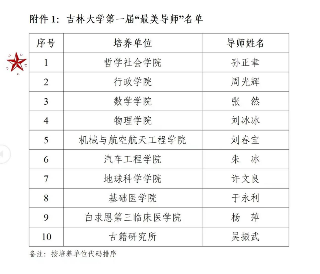 根据《吉林大学落实研究生导师立德树人职责实施细则(试行)》《关于开展吉林大学第一届“最美导师”评选活动的通知》等有关文件精神,经各研究生培养单位推荐、网络投票、资格审查及专家评审等环节,拟定20位教师获吉林大学第一届“最美导师”、“最美导师”提名奖。