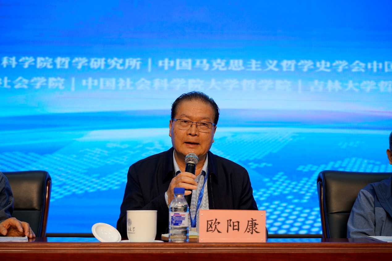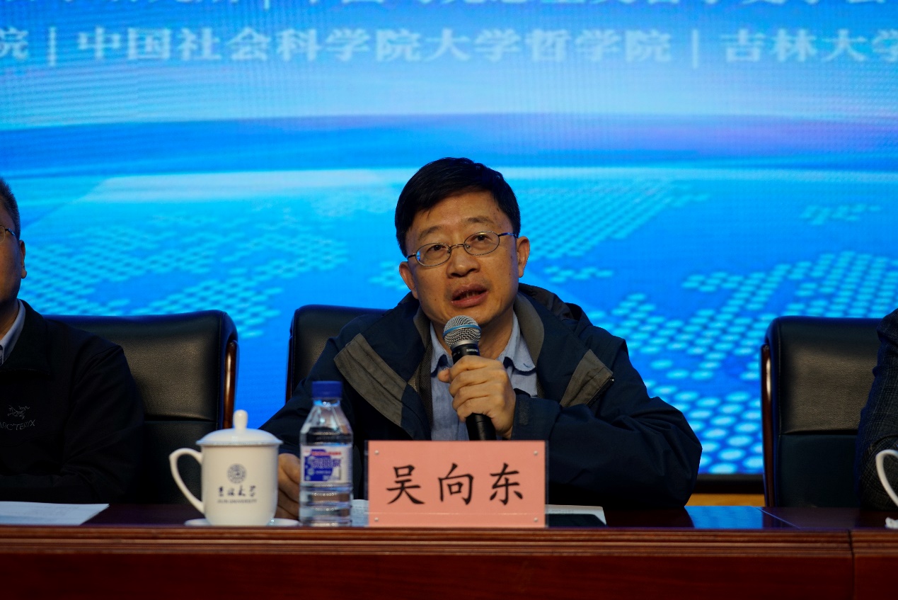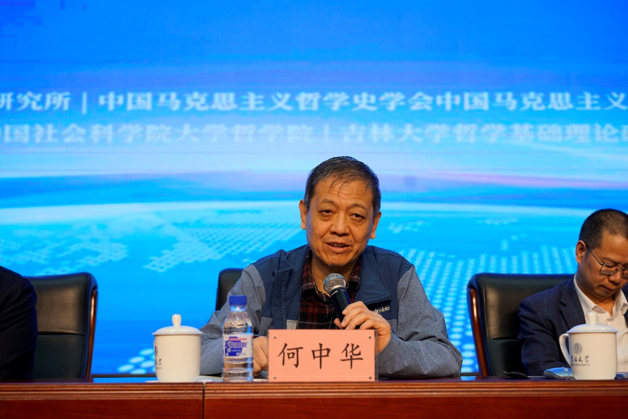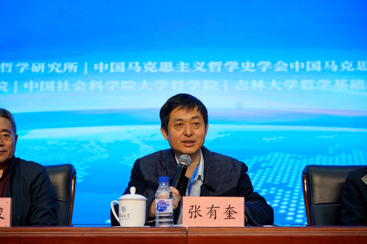 《哲学研究》编辑部主任周丹主持第一场大会发言,吉林大学资深教授孙正聿、南开大学教授王南湜、中央党校一级教授韩庆祥、武汉大学教授何萍、东北师范大学教授胡海波分别做了大会发言。