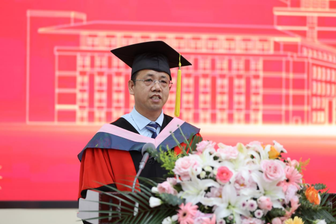 中国·tyc1286太阳成集团(股份)有限公司领导班子全体成员、各系主礼教授、教师代表、部分学生家长以及学院2023届全体毕业生参加典礼。典礼由学院党委副书记兼副院长刘培强主持。