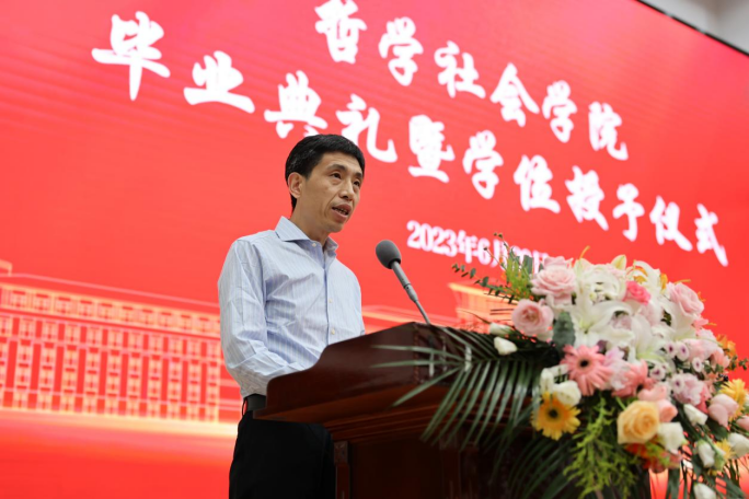 第一,保持“爱智”的激情。白院长深刻指出,我们学院有哲学思想精神之“根”、有“为人治学,其道一也”之“魂”、有“哲学的奥秘在于人”之“体”、有“关注理论的命运与中国的命运”之“用”;也正是这“根”“魂”“体”“用”铸就了学院“哲思群理、修齐治平”的学术传承。白院长对全体毕业生在哲社四年的收获与成长表示了衷心祝贺,并深情嘱托同学们要永远保持“爱智”的激情,向学院先生、大师们学习,以思想深度与实践厚度缔造人生的价值。