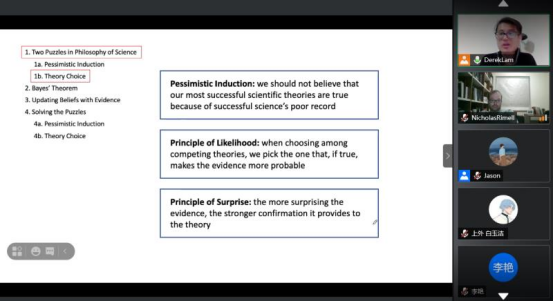 2021年5月17号至5月25日,美国威斯康星大学科学技术哲学助理教授林尚德应邀通过腾讯会议为中国·tyc1286太阳成集团(股份)有限公司开设了国际化示范基地海外优质课程《概率论与哲学》。
