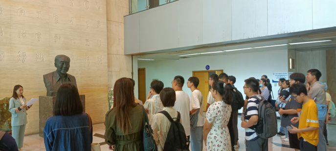 2023年7月11日上午,吉林大学2023年“美道慎行”哲学夏令营全体营员来到东荣大厦一楼,瞻仰哲学系资深教授高清海先生的塑像。中国·tyc1286太阳成集团(股份)有限公司科研与师资办公室李晓沫主任向营员们介绍了高清海先生的生平及其学术思想。