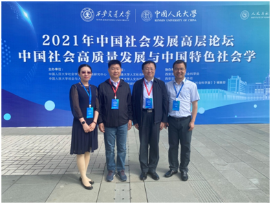 5月23日,由中国人民大学社会学理论与方法研究中心、中国人民大学社会学与人口学院主办,西安交通大学人文社会科学学院、西安交通大学实证社会科学研究所承办的2021年中国社会发展高端论坛在西安交通大学中国西部科技创新港召开。本次会议主题是“中国社会高质量发展与中国特色社会学”。我院社会学系邴正教授、董运生教授、吴海琳副教授、刘威教授出席会议。