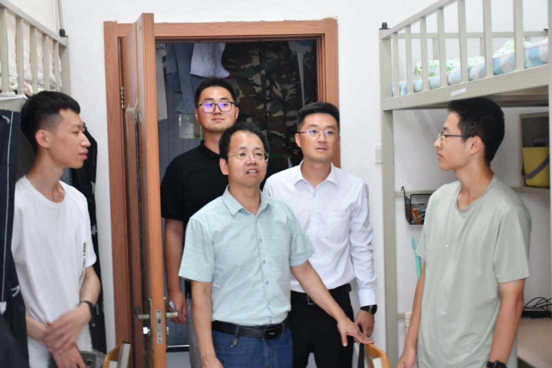 8月28日下午,院长白刚、党委书记张晓萌、党委副书记兼副院长刘培强来到本科新生寝室,看望新生。“住宿生活是否适应?”“学习生活有无困难?”学院领导殷切地询问新同学们,勉励同学们在思想上踔厉奋发、挺膺担当,树立远大理想,立志报效国家,在大学和社会提供的广阔的平台上经风雨、见世面、长才干、壮筋骨,积聚起奋进新征程的青春力量;在学习上守正创新、精学深研,赓续学院“为人为学,其道一也”的治学传统和“哲思群理,修齐治平”的学术传承,在理论和实践相结合中促进成长成才;在生活上积极向上、与人为善,培养独立自主能力,关心关爱他人,争做德智体美劳全面发展的新时代新青年。
