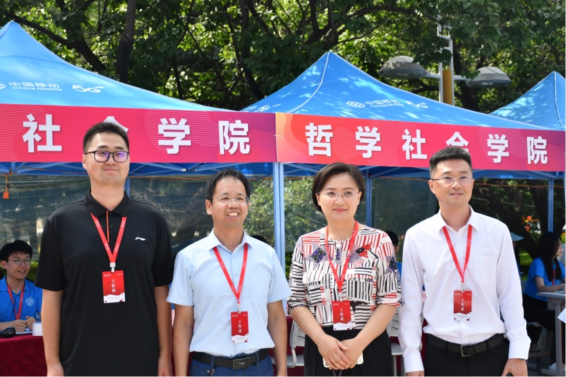 8月25日上午,白刚院长、张晓萌书记来到学院迎新场地,检查迎新工作、慰问工作人员和志愿者。