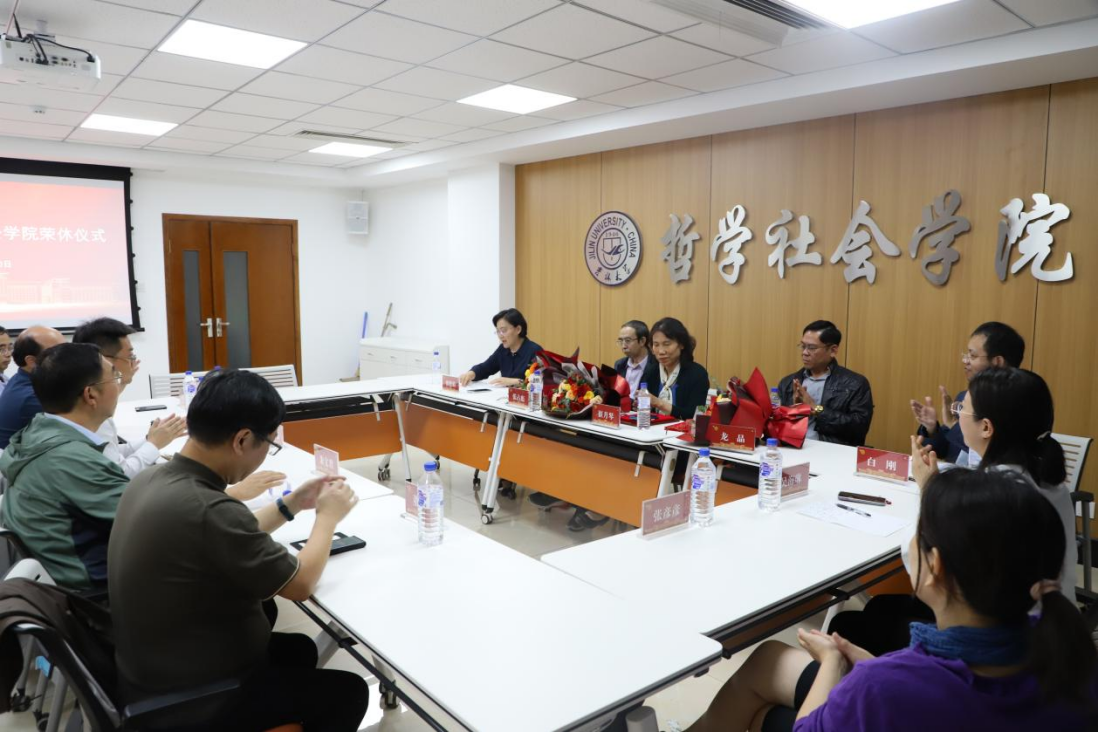 吴海琳老师代表全体在职教师对几位老师为学院、学科建设所做出的贡献表达了由衷的感谢,作为学生她有幸听过几位老师的课作为同事她也十分荣幸与几位老师共事多年,她表示将赓续学院治学传统,接过前辈的接力棒,将学院、学科建设发展事业继续做实、做好。