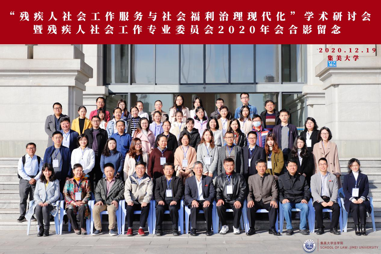2020年12月19日,由中国残疾人事业发展研究会残疾人社会工作专业委员会、集美大学法学院、南京大学残疾人事业发展研究中心联合主办的“残疾人社会工作服务与社会福利治理现代化”学术研讨会暨残疾人社会工作专业委员会2020学术年会在集美大学召开。来自南京大学、山东大学、吉林大学、厦门大学、集美大学、长春大学、西北大学、中国矿业大学、武汉理工大学、安徽工业大学、南京林业大学、浙江师范大学、福建师范大学、南京市委党校、铜陵学院、重庆人文科技学院、江苏省残疾人事业发展研究会、陕西社会科学院等多家高校及研究机构的学者,以及来自无锡慧成儿童康复中心、厦门合携社会工作服务中心、济南市伟众儿童康复中心、深圳北斗社会工作服务中心等机构实务工作者共50余名代表参加了本次会议。