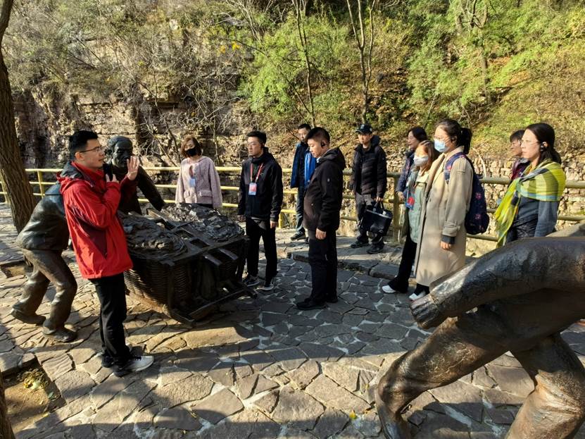 11月8日上午,学员们来到红旗渠的重点工程——青年洞进行参观学习。铁锤叮当,钢钎铿锵,打破了太行山亿万年的寂寞;炮声隆隆,无坚不摧,撕裂了干渴的旧山川。四公里的徒步教学路线两侧,万仞壁立、千峰如削,在工作人员的讲解中,学员们学习“号角嘹亮”、“小推车”、“踏遍青山”等雕塑背后的劳动故事,重温“铁姑娘打钎”、“凌空除险”等修渠场景,进一步感受到红旗渠工程的伟大和艰辛。看着穿山而过的红旗渠水,学员们切身感受到“引漳入林”工程的艰辛与不易,为当地人民不屈不挠的革命斗志和战天斗地的英雄气概所震撼。