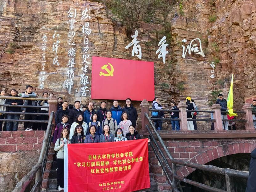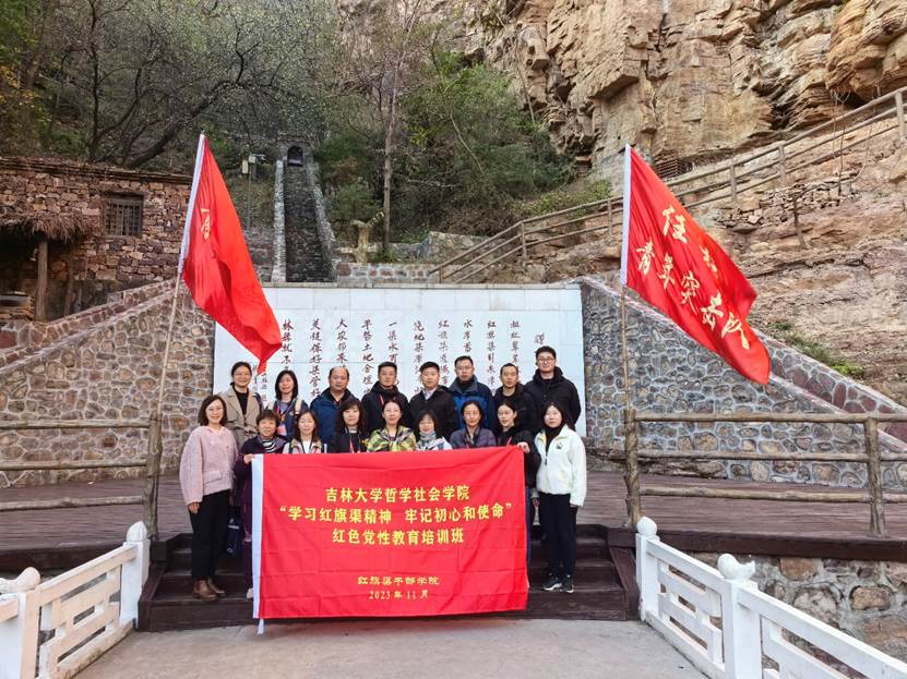 红旗渠精神,是中国共产党人的精神谱系中一面极具感召力的光辉旗帜;红旗渠,是河南人民不怕困难、艰苦奋斗历程的一座不朽丰碑。为进一步开展学习党的二十大精神,深入贯彻落实习近平新时代中国特色社会主义思想主题教育,增强基层党组织的凝聚力和战斗力,提升党员党性修养和思想素质,由我院党委筹划组织,学院党委副书记兼副院长刘培强老师带队,副院长芦恒教授、哲学基础理论研究中心副主任李生琦老师以及学院各党支部书记、支部委员等共计18人组成红色教育学习组,集体前往河南红旗渠干部学院开展“学习红旗渠精神,牢记初心和使命”红色党性教育培训活动。