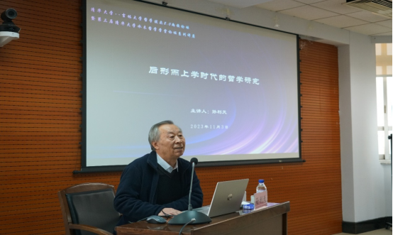 孙老师还以马克思哲学的立场来看后形而上学时代。孙老师介绍了马克思批判的革命的理论的世界观,并指出马克思哲学的实践转向终结了形而上学。除此之外,马克思哲学还面向未来,在批判的革命的实践的批判中发现新世界。孙老师还分析了后形而上学对马克思哲学的批判,指出后形而上学忽略了实践的观念。 孙老师提出对后形而上学时代的哲学研究,告诉我们哲学不会消亡、哲学不被取代,并以海德格尔的《哲学的终结与思的任务》来引出后形而上学思想的概念,并强调否定性思维对人类文明的重要性。孙老师从德里达、海德格尔、哈贝马斯等哲学家的角度来分析,得出在后形而上学时代仍需要哲学的结论。