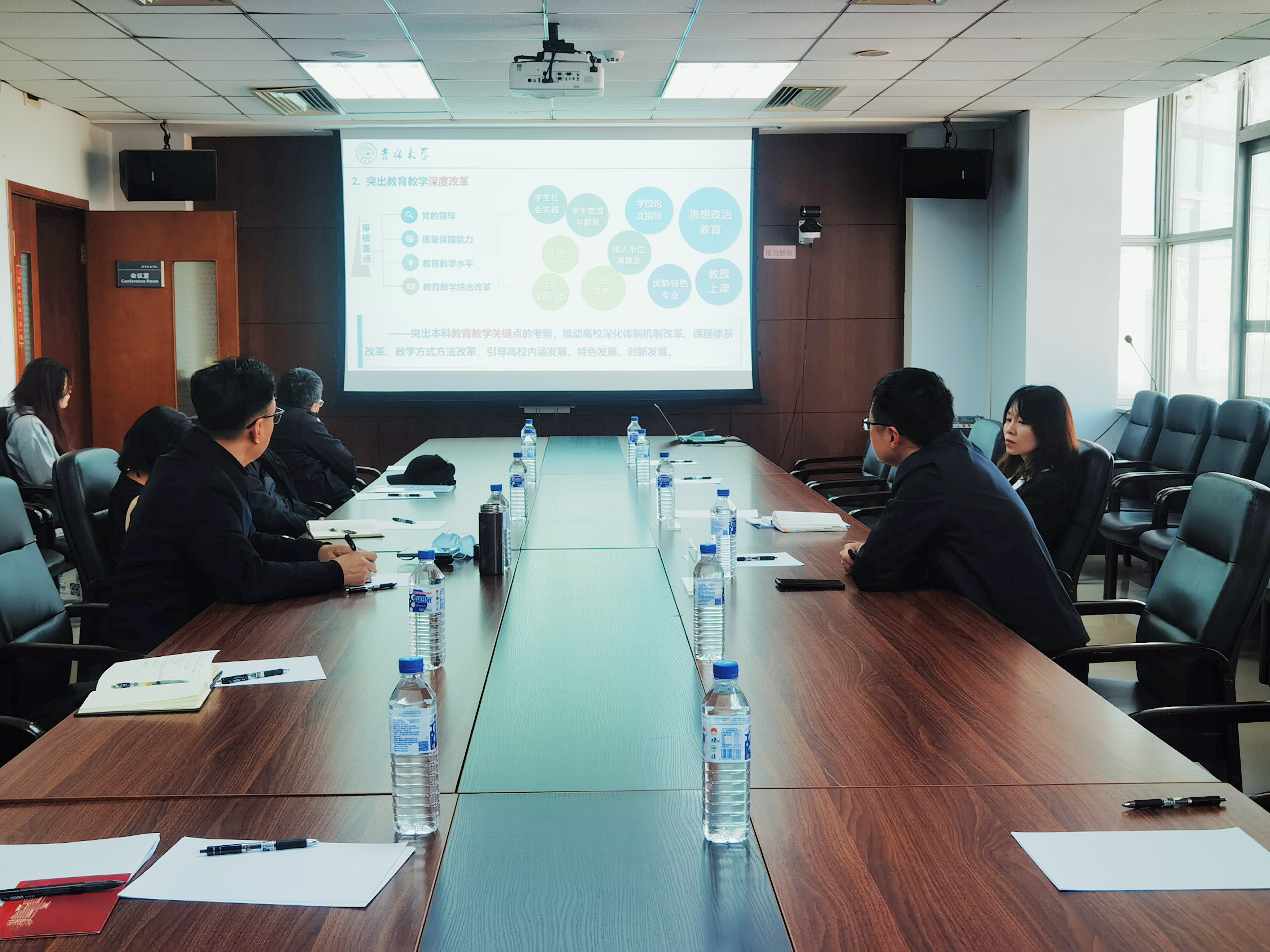 首先,李龙副院长再次强调了本科教育教学审核评估工作的重要性,并对学院本科教育教学审核评估工作已经取得的进展进行了介绍,对陈卓主任、李园科长的莅临指导表示了热烈欢迎与衷心感谢。