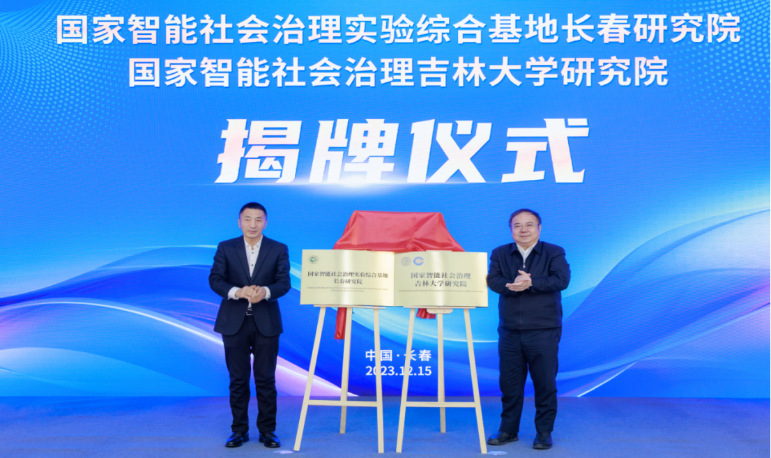 为深入贯彻落实习近平总书记关于网络强国的重要思想,开展人工智能社会实验、加快新一代人工智能技术与社会治理的深度融合,提升社会治理体系效能,长春市委市政府统筹规划、顶层设计,与吉林大学有效协同、精诚合作,共同成立了国家智能社会治理实验综合基地长春研究院、国家智能社会治理吉林大学研究院。2023年12月15日上午,两所研究院在吉林大学举行揭牌仪式。吉林省委宣传部副部长、省委网信办主任王颖,长春市委副书记、宣传部部长赵明,吉林大学党委副书记韩喜平,长春市委网络安全与信息化办公室主任宋学兵,吉林大学社会科学研究院院长曲红梅教授,中国·tyc1286太阳成集团(股份)有限公司党委书记张晓萌,院长白刚教授等人参加活动。揭牌仪式由长春市政府副秘书长王文元主持。