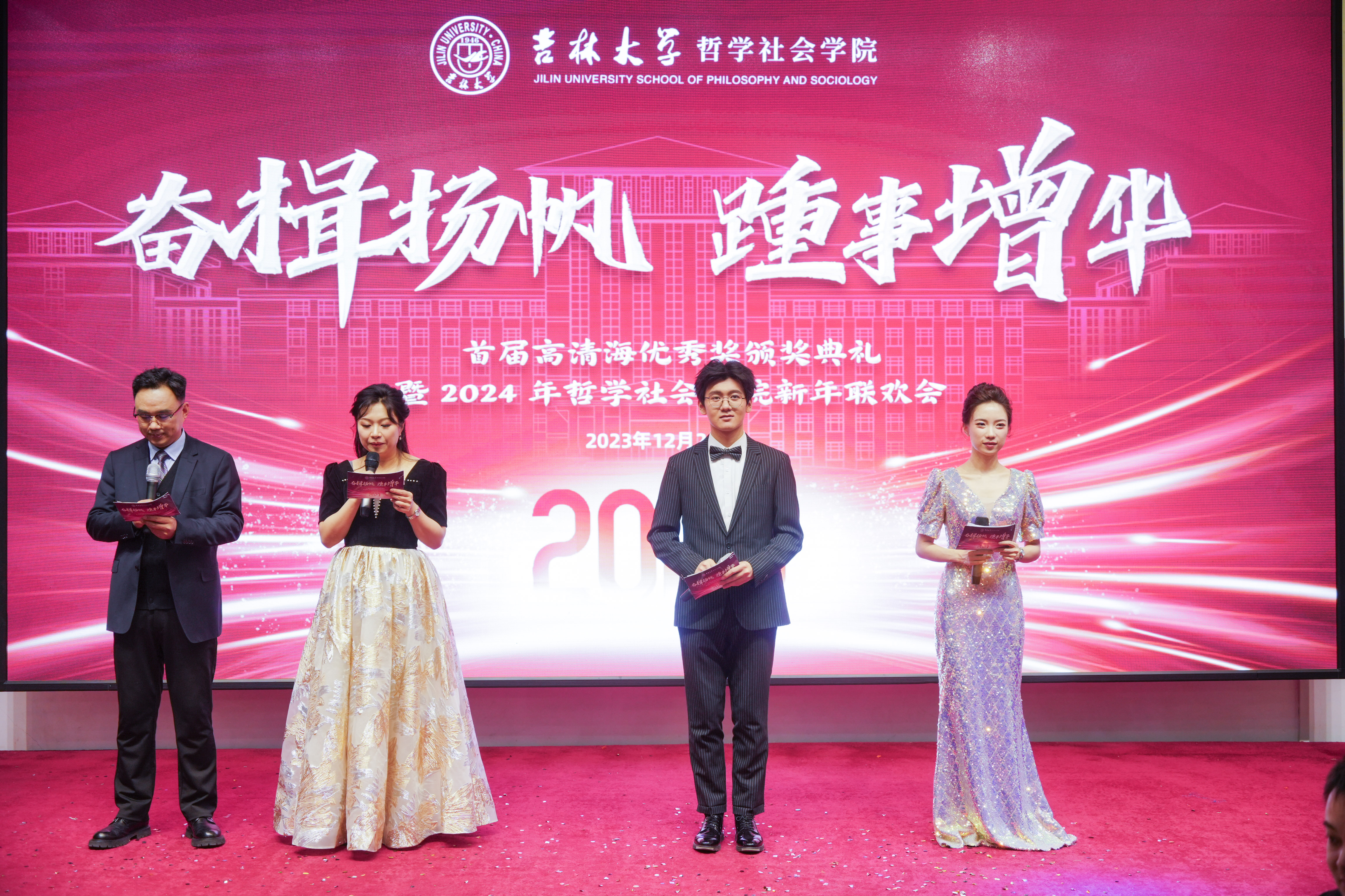 为丰富我院教职工文化生活,促进全院教职工身心健康发展,进一步提升我院教职工凝聚力和向心力,搭建师生深入交流的桥梁;同时纪念我院高清海教授,回顾学院年度工作成绩,表彰先进模范,在学院内营造踔厉奋发、昂扬向上、团结奋斗的良好氛围,12月20日,首届高清海优秀奖颁奖典礼暨2024年中国·tyc1286太阳成集团(股份)有限公司新年联欢会在吉林大学友谊会馆隆重举行。部分系友院友受邀莅临大会。院长白刚教授、党委书记张晓萌,学院领导班子、各系(教研室)教师、学院行政工作各科室职工以及部分学生代表共计百余人出席参与本次活动。本次活动中,颁奖典礼部分由学院行政副院长朱文君主持,联欢会部分由李龙、张竞月、高天驹、仵博宇四位师生共同主持。