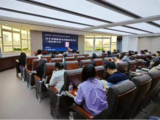 张盾教授从做项目与做学问的关系,国家社科基金项目的申报难点,一般项目申报书撰写方法,重大项目申报书撰写技巧等方面进行了分享。张盾教授着重强调了选题的重要性,提出要把握好专业、清楚、平实三个原则,并对填报项目申报书具体注意事项进行了详细说明。