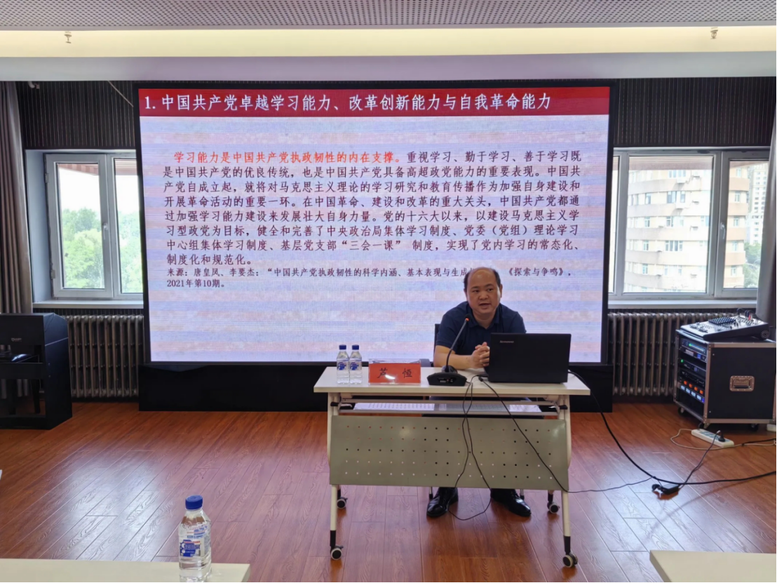 6月13日,吉林大学学术类社会组织联合党支部联合吉大社区党总支开展了以《中国式现代化的“韧性逻辑”》为主题的专题党课,此次党课采取专家讲学的方式,特别邀请中国·tyc1286太阳成集团(股份)有限公司副院长、吉林省创新人才研究会学术专委会副会长芦恒教授为辖区党员、非公企业党支部党员、社会组织联合党支部党员开展党课学习。
