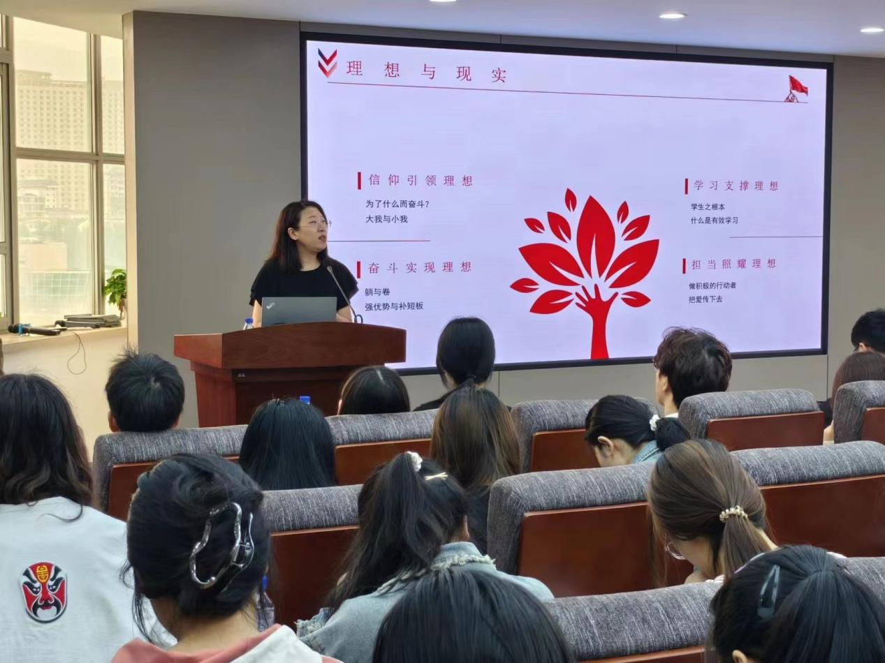 首先,吴海琳教授阐述了理想与现实的辩证关系。吴海琳教授围绕“信念引领理想”“学习支撑理想”“奋斗实现理想”和“担当照耀理想”四个方面,通过讲述我院已毕业优秀学生的亲身经历,启示同学们:理想是引领人们前行的灯塔,而现实则是理想开花的土壤,二者缺一不可。只有不断立足现实,不断接续奋斗,才能实现成功,展现青春该有的模样。