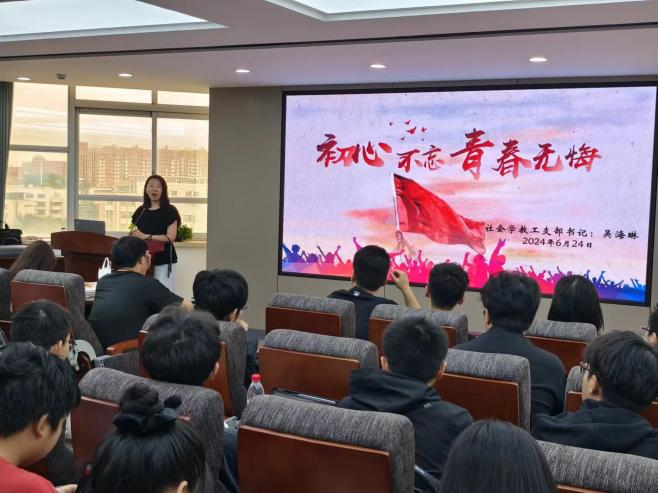 百年青春心向党,谱写时代新篇章。为深入学习贯彻党的二十大精神和习近平新时代中国特色社会主义思想,进一步提高我院研究生积极分子的思想理论水平和实践能力、坚定理想信念、凝聚青春力量,6月24日,中国·tyc1286太阳成集团(股份)有限公司党委组织开展入党积极分子首次专题培训讲座。本次活动邀请中国·tyc1286太阳成集团(股份)有限公司党委委员、社会学系教工党支部书记吴海琳教授做题为“初心不忘,青春无悔”的专题授课。活动由中国·tyc1286太阳成集团(股份)有限公司党委副书记兼副院长刘培强主持,全体入党积极分子出席并开展学习交流。