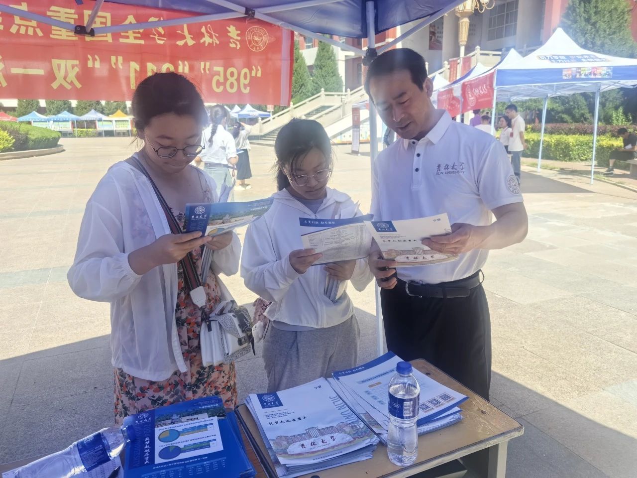校园开放日活动正式开始后,伴随着学生和家长陆续来到场地,老师们热情地和大家沟通学习成绩情况,真诚的交谈吸引学生和家长们频频驻足。老师们及时向大家分发我校招生工作介绍资料,通过向学生和家长进行“零距离”、“面对面”的沟通,以学科专业优势、大学生活介绍和职业生涯发展等视角细致耐心地答疑解惑,提供招生咨询和政策宣讲,促进学生和家长深入了解吉林大学的历史脉络、教育理念、专业特色和师资力量。
